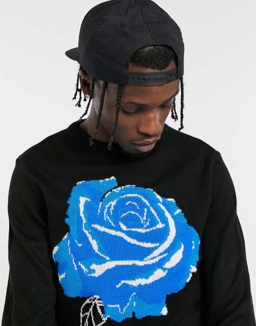 Obey relaxed knitted jumper in black with rose print ASOS Very well made.