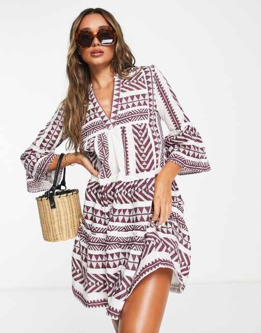Accessorize Exclusive emboidered beach smock summer dress in cream plum Very well made.