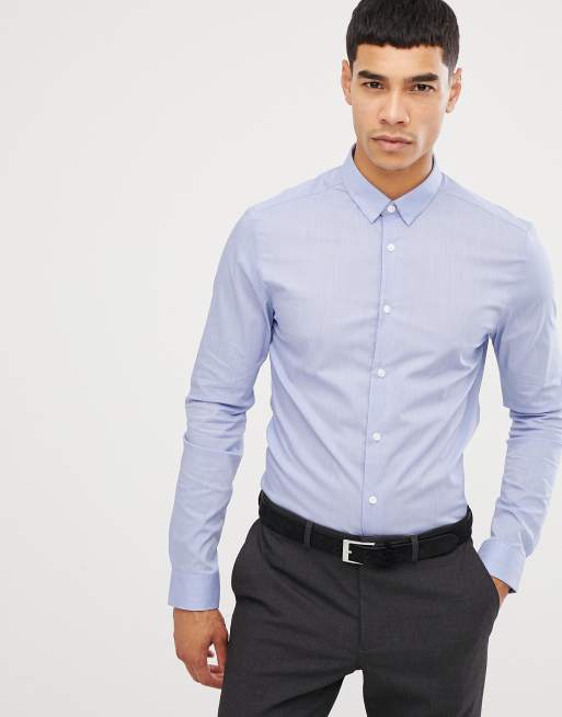 Camicia azzurra in puro cotone micro riga con collo alla francese Very well made.