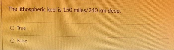 Solved The lithospheric keel is 150 miles 240 km deep. True Very well made.
