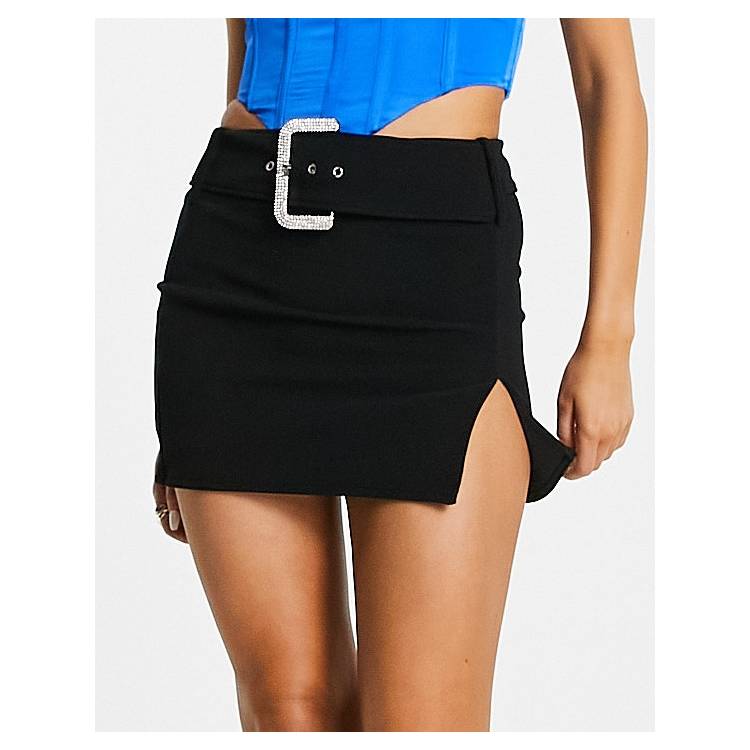 ASOS DESIGN giant buckle mini skirt in black Very well made.