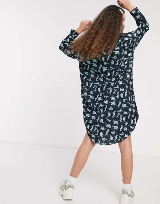 Monki cat print shirt dress in navy Very well made.