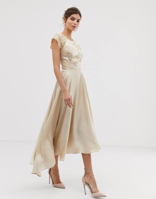 Premium Plunge Neck Cutwork Lace Midi Dress Very well made.