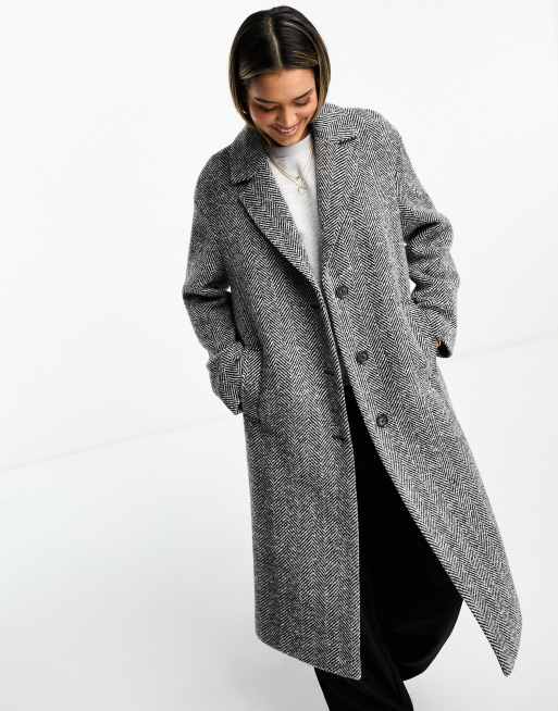 Stradivarius wool blend coat in gray herringbone Very well made.