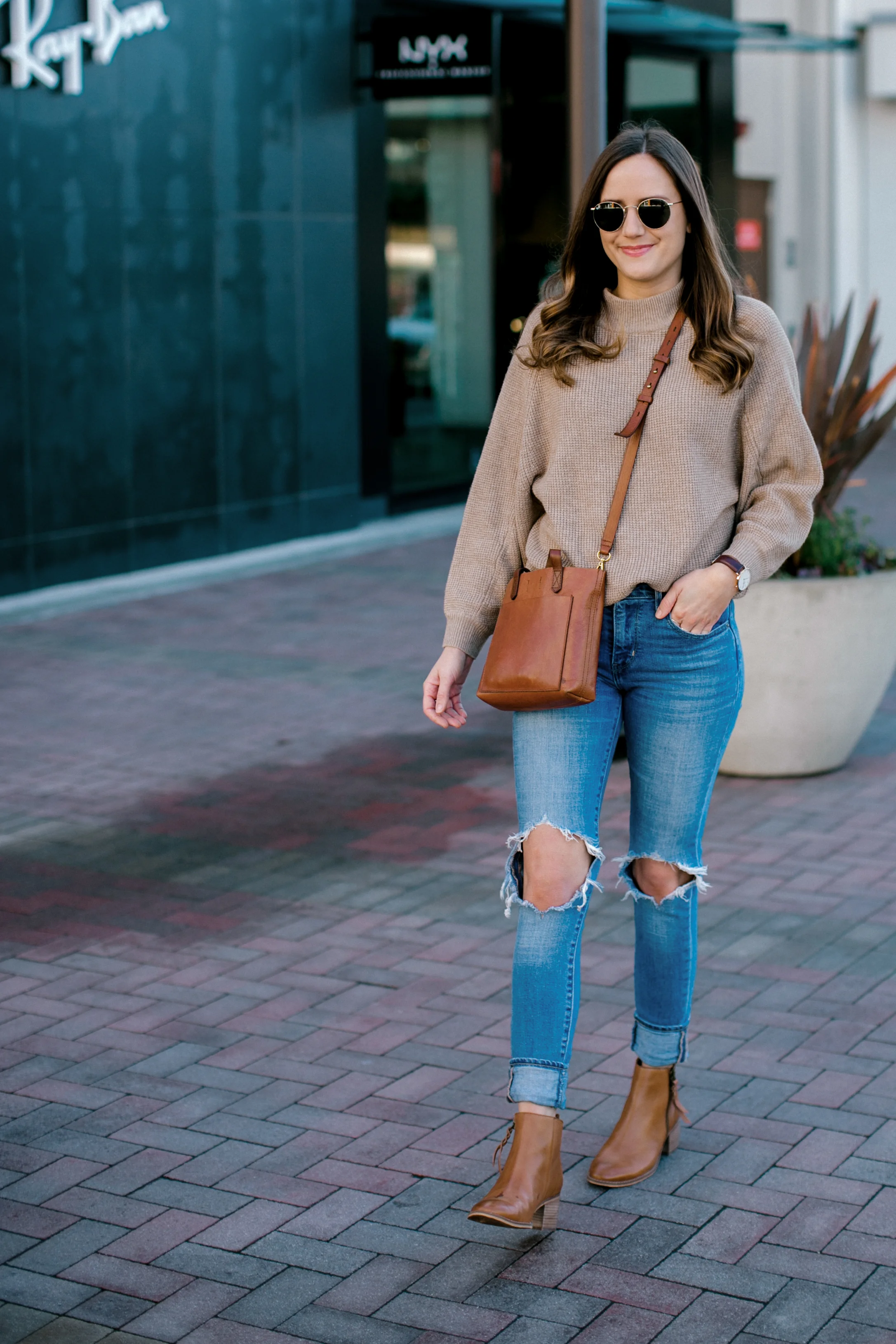 Camel Sweater and Cognac Ankle Boots Tyler Harless Very well made.