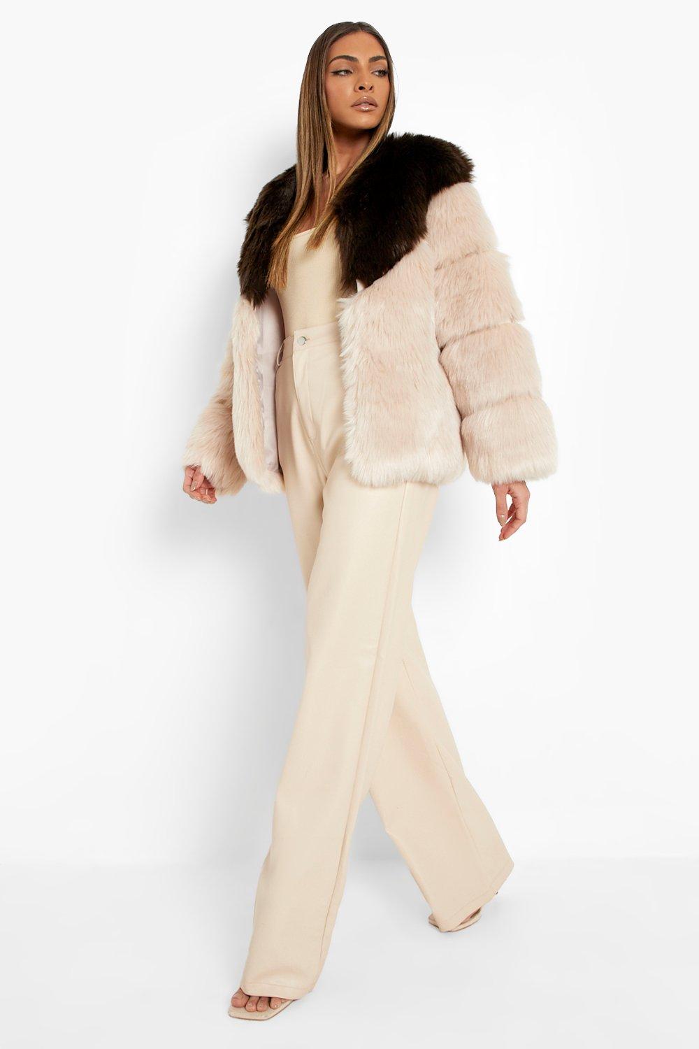 Luxe Panelled Faux Fur Colorblock Coat Very well made.