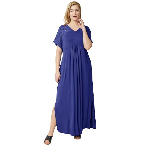 ellos Women s Plus Size Eyelet Trim Knit Maxi Dress 10 12 Blue Very well made.