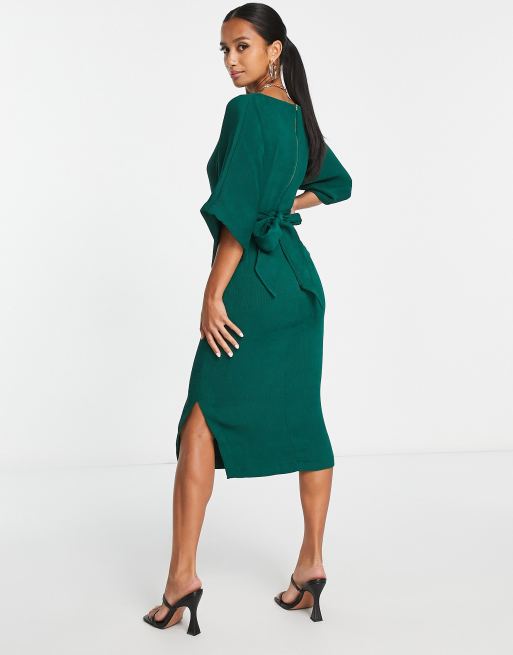 Closet London Petite ribbed pencil midi dress in emerald green Very well made.