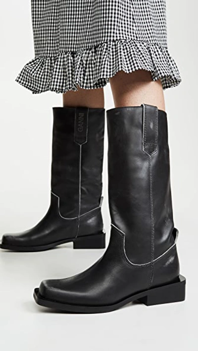Ganni Mc Distressed Leather Western Boots In Black ModeSens Very well made.