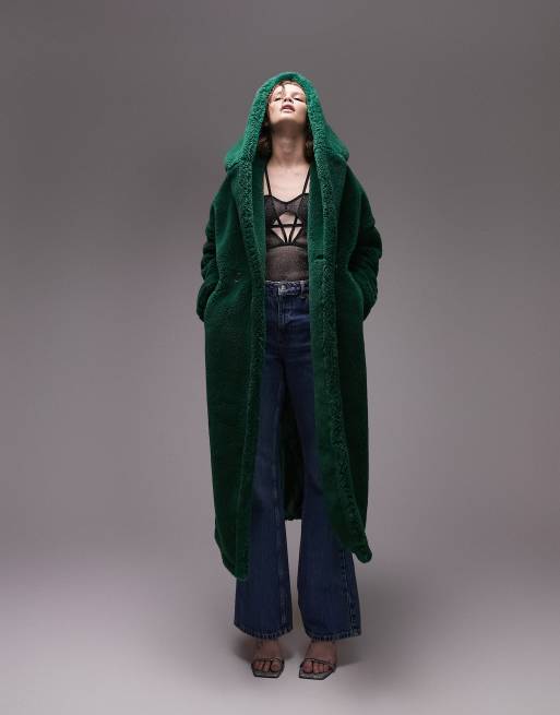 Topshop hooded borg coat in green Very well made.