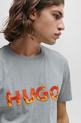 HUGO Cotton jersey T shirt with puffed flame logo Very well made.