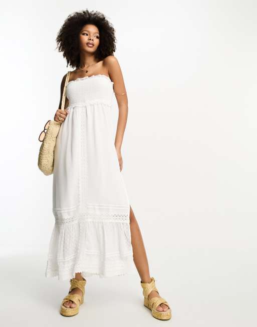River Island bandeau maxi dress with lace detail in white Very well made.