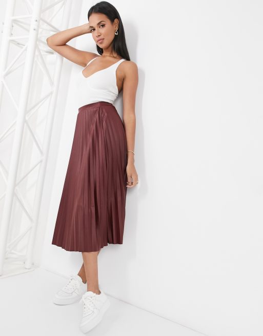 ASOS DESIGN Jupe mi longue pliss e en similicuir Bordeaux Very well made.