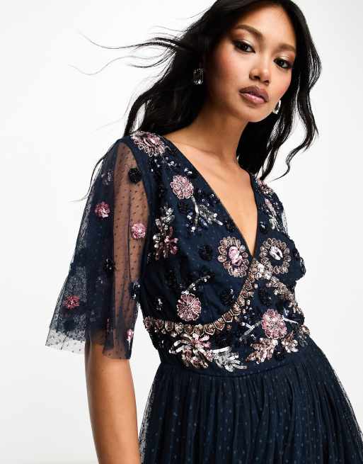 Maya Robe mi longue ornement e avec jupe en tulle Bleu marine Very well made.