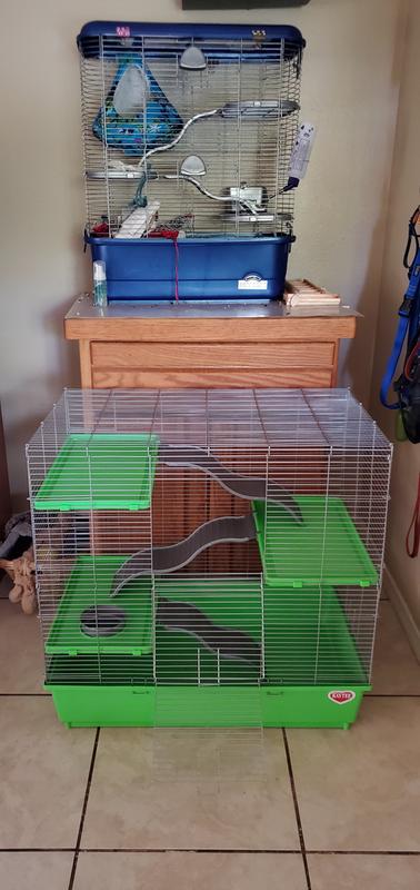 DIY Modified Kaytee Multilevel Exotics Cage and rat proof free range space Very well made.