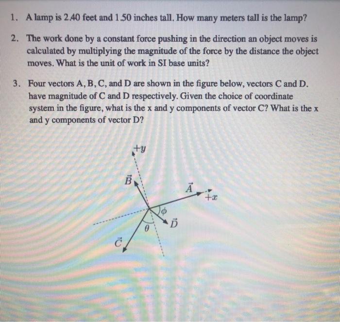 Solved 1. A lamp is 2.40 feet and 1.50 inches tall. How many Very well made.