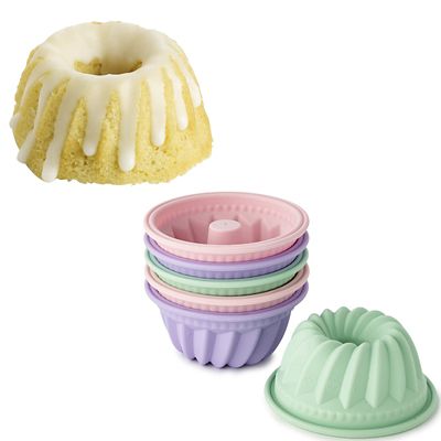 6 Individual Silicone Bund Cake or Jelly Moulds Very well made.