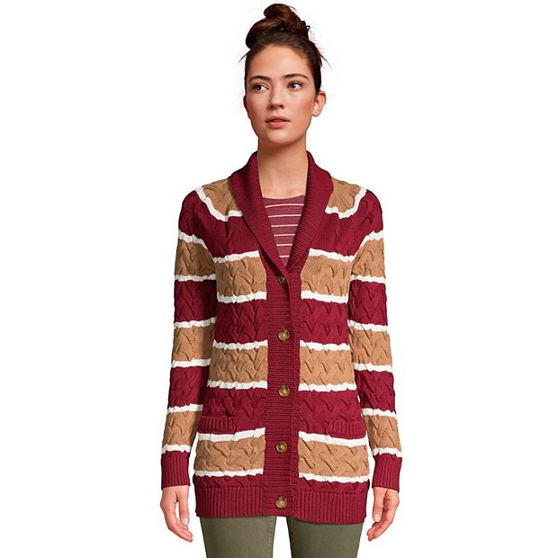 Women s Lands End Drifter Cable Knit Shawl Cardigan Sweater Very well made.