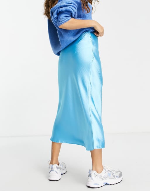 ASOS DESIGN Petite high shine satin midi slip skirt in blue Very well made.