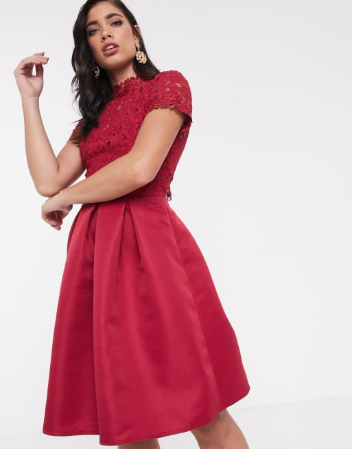 Little Mistress Women s Lace Top Midi Party Dress Red Crimson Very well made.