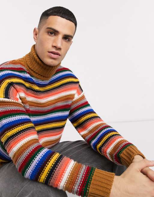 ASOS DESIGN roll neck sweater in multi colored stripe Very well made.