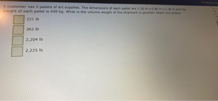 Solved A customer has 5 pallets of art supplies. The Chegg Very well made.