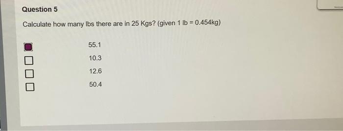 Solved Question 5 Calculate how many lbs there are in 25 Chegg Very well made.