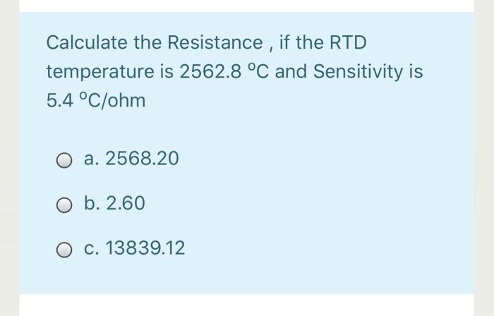 Solved Calculate the Resistance if the RTD temperature is Very well made.