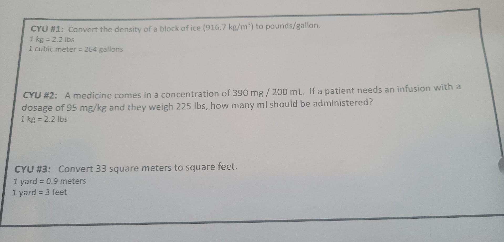 Solved CYU 1 Convert the density of a block of ice 916.7 Very well made.