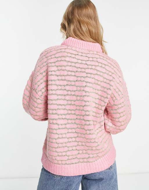 ASOS DESIGN oversize sweater with metallic stitch in pink and gold Very well made.