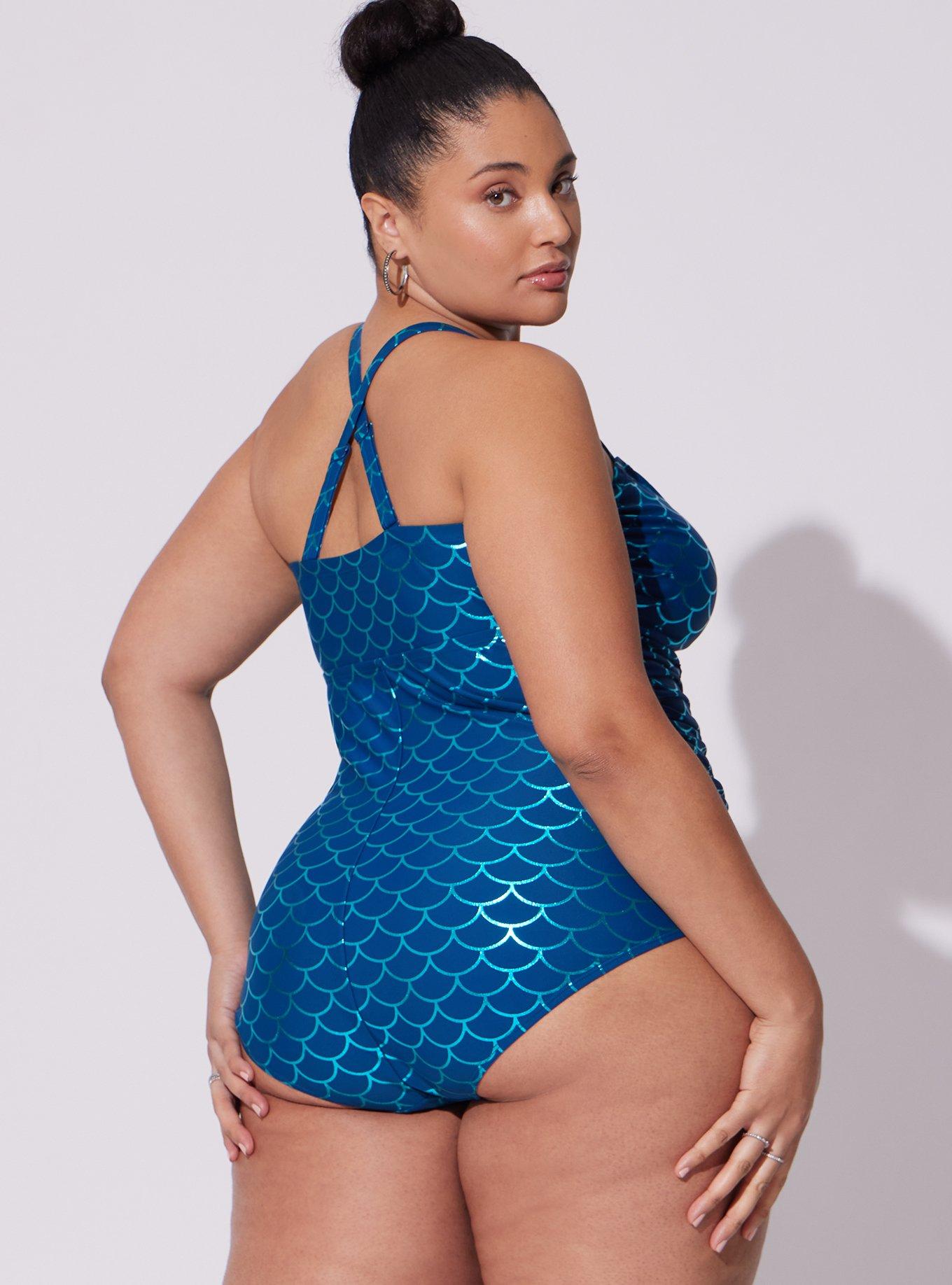 Plus Size Mermaid Print One Piece Women s Swimsuit Cut Out Push Up Very well made.
