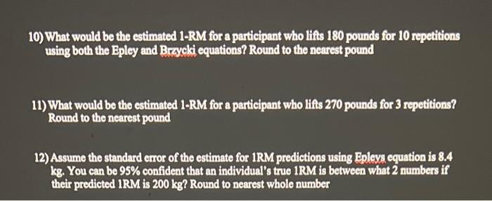 Solved 10 What would be the estimated 1 RM for a Chegg Very well made.