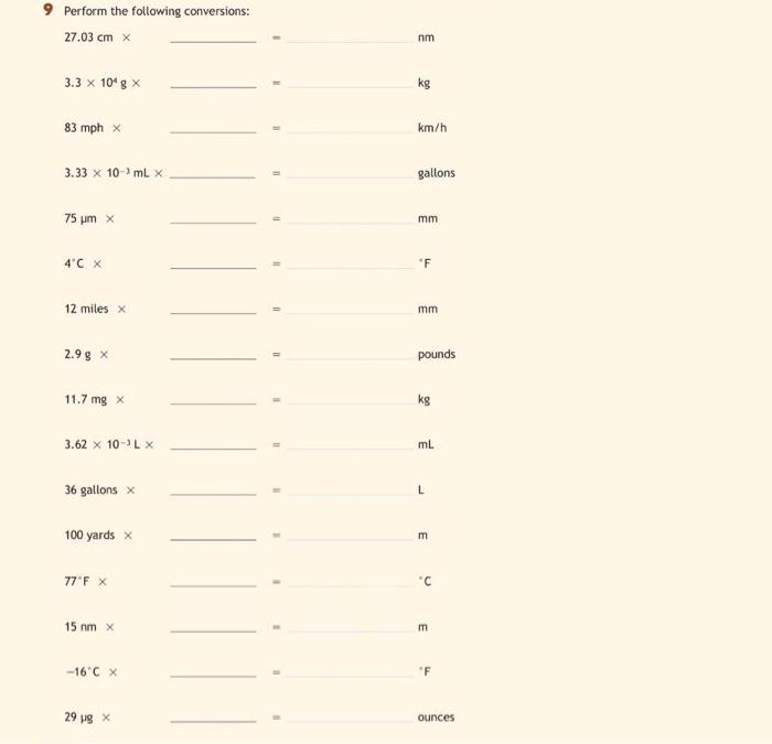 Solved 9 Perform the following conversions 27.03 cm nm 3.3 Very well made.
