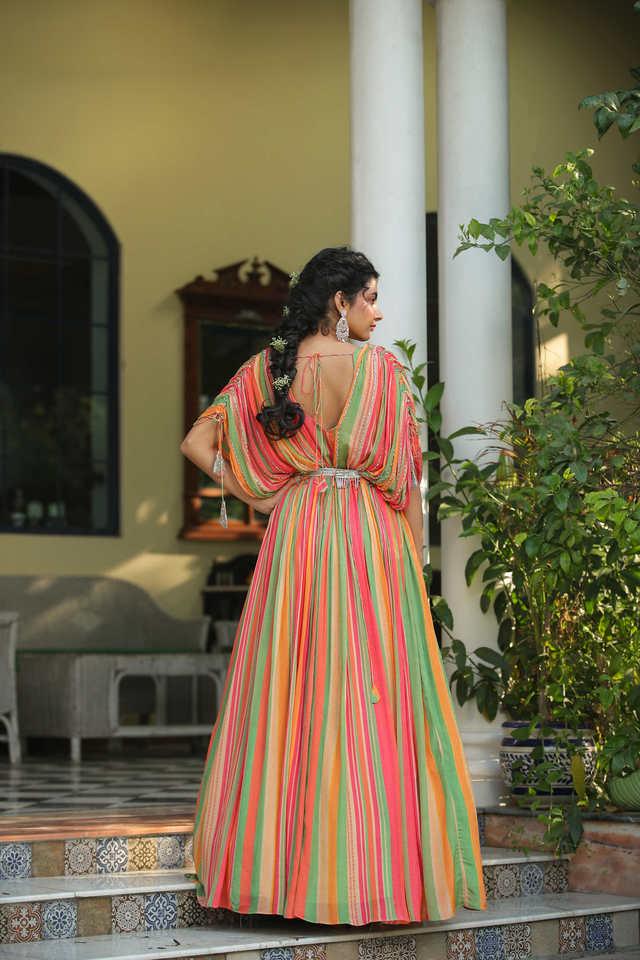 Buy SCAKHI Stripes Silk V Neck Women s Ethnic Dress Shoppers Stop Very well made.