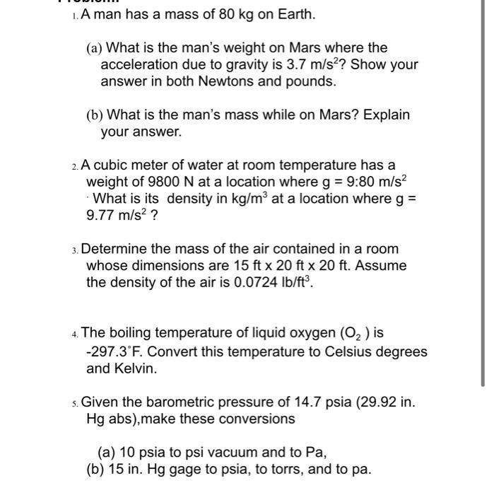 Solved 1. A man has a mass of 80 kg on Earth. a What is Chegg Very well made.