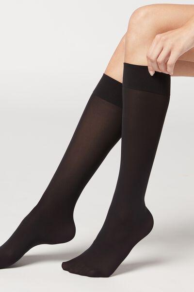 Calzedonia Black 30 Denier Semi Opaque Microfibre Knee Highs Very well made.