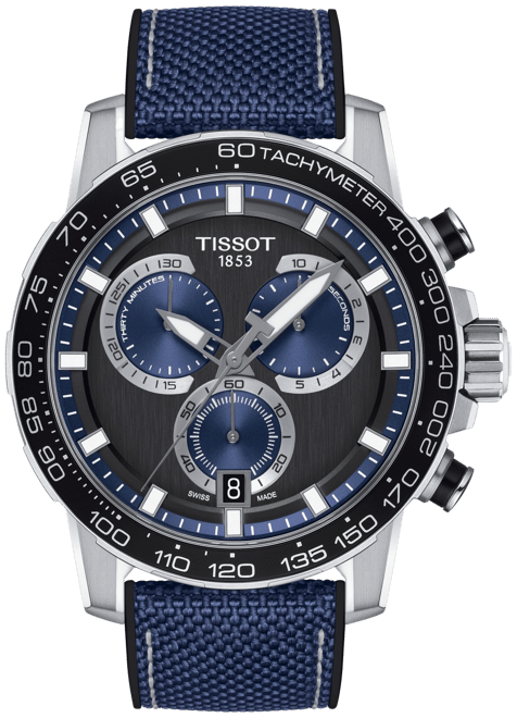 Men s Swiss Chronograph Supersport Blue Textile Strap Watch 40mm Very well made.