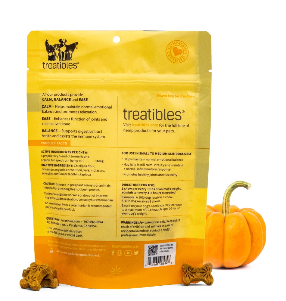 Treatibles Organic Pumpkin Hard Chews for Large Dogs Family Pet Very well made.