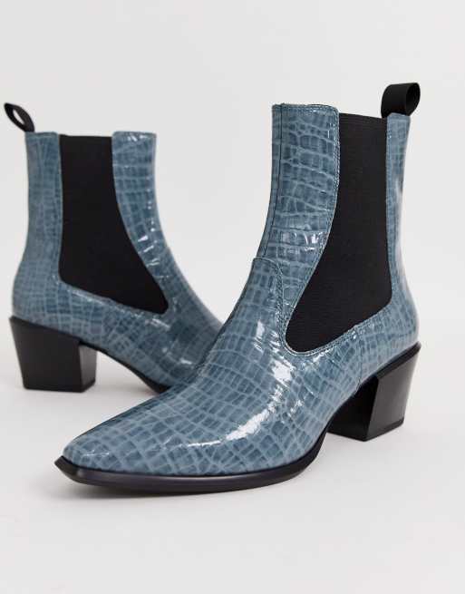 Vagabond Betsy leather mid heel anle boots in blue croc ASOS Very well made.