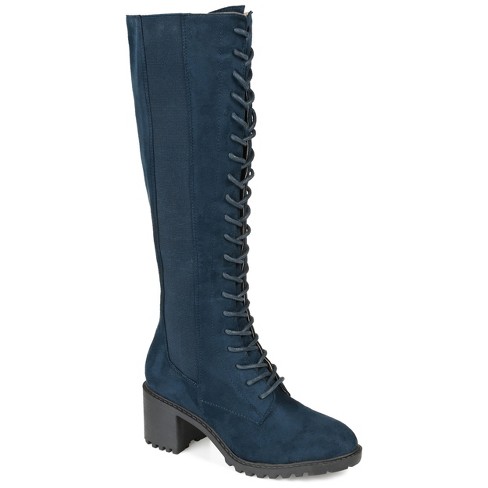 Journee Collection Womens Jenicca Tru Comfort Foam Wide Calf Stacked Heel Knee High Boots Navy 11 Very well made.