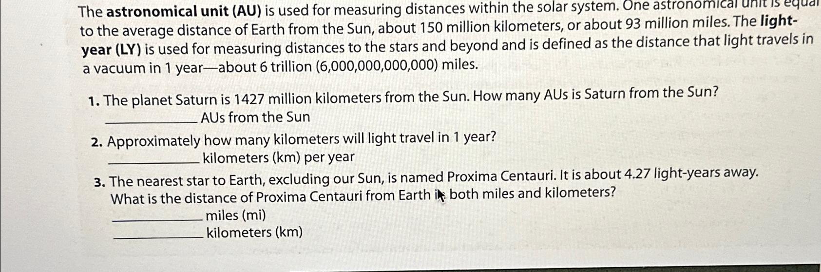 Solved The astronomical unit AU is used for measuring Chegg Very well made.