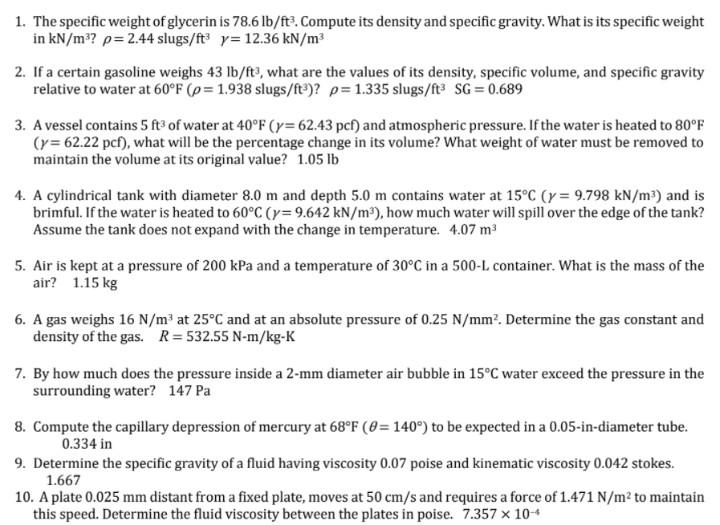 Solved 1. The specific weight of glycerin is 78.6 lb ft3. Chegg Very well made.