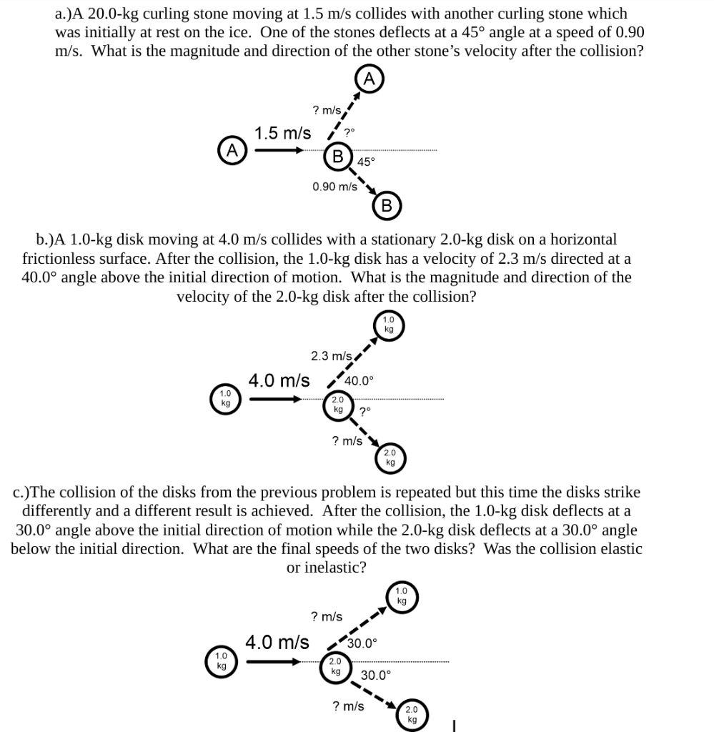 Solved a. A 20.0 kg curling stone moving at 1.5 m s collides Very well made.