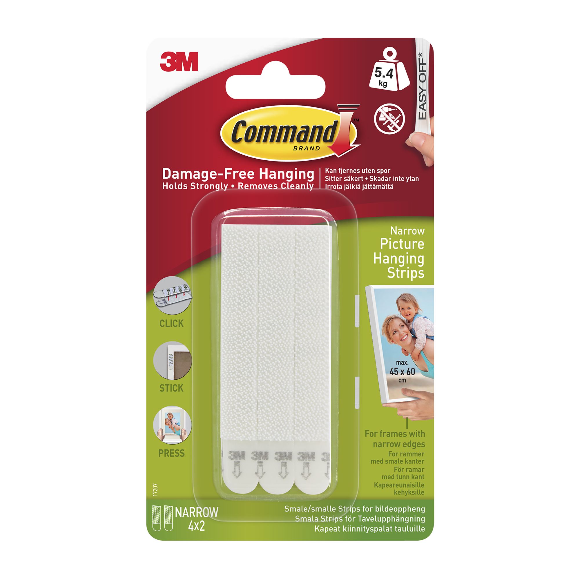 3M Command Narrow White Picture hanging Adhesive strip Holds 5.4 Very well made.