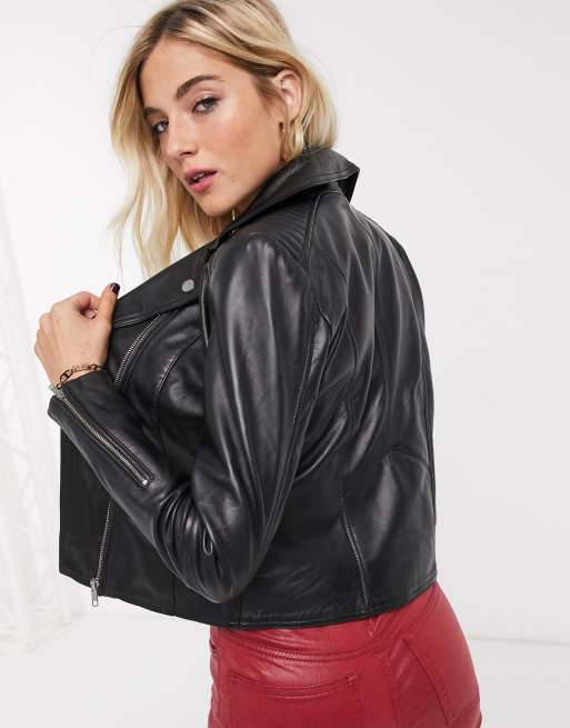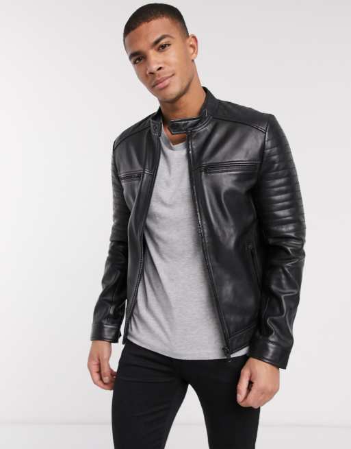 Barney s Originals ribbed belt detail leather jacket in black Very well made.