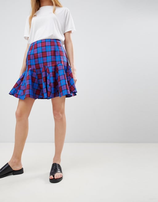 ASOS DESIGN tailored blue and red check mini skirt with godet hem Very well made.