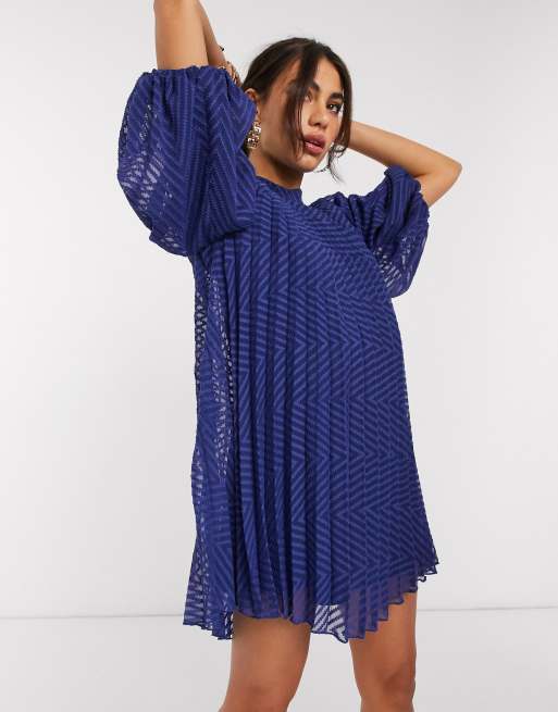 ASOS DESIGN pleated trapeze mini dress with tie sleeves Very well made.