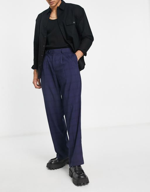 ASOS DESIGN high waist wide leg trousers in navy window pane ASOS Very well made.