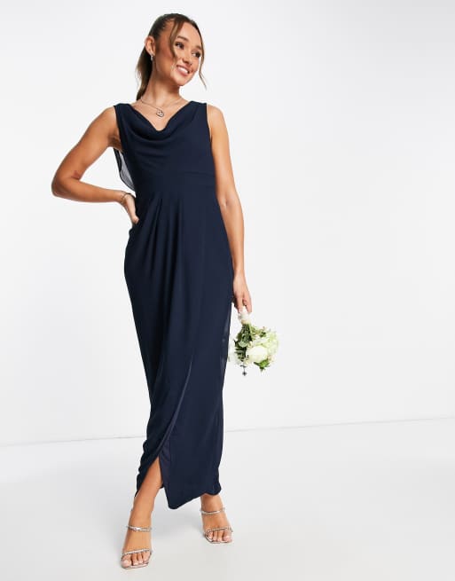 TFNC Bridesmaid one shoulder maxi dress in navy Very well made.