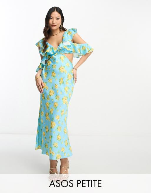 ASOS DESIGN Petite satin midaxi dress with multi flutter sleeves in blue floral print Very well made.